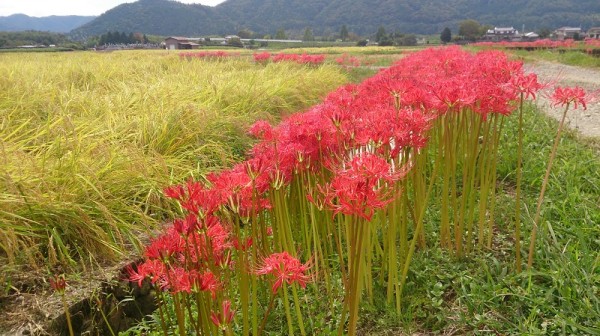 周りの黄金色に実った田畑を祝福するかのように、真っ赤に咲いていた。