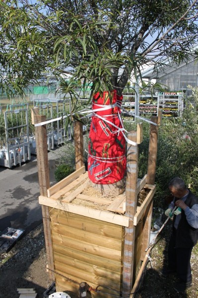 自然形のオリーブを好む人が大半であろうが、このようなタイプも好む人は案外多くまだ検討の余地はあるのではないかと思う。またこのサイズなら頑張れば人力での移動も可能であろう。ただ国内輸送であれば何ら問題はないが、輸入それも長時間の輸送では、安易にも考えられず、まだまだ課題が残ると思われるので、検討が必要かもしれない。