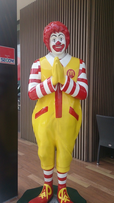 タイならではのマクドナルドのドナルド君。タイでは小さいころから儀礼を重んじ、徹底的に教育を行っているため、ご挨拶させていただく人は殆んどこのようなポージングである。ドナルド君まで行っているのだからその徹底ぶりには敬意を表したいと思った。