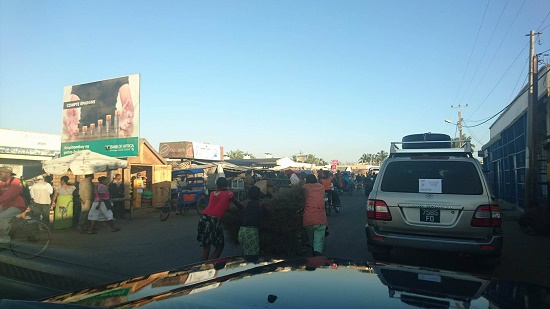 相変わらず渋滞の市内を車で移動。途中、木曜マーケットが開催されているためさらに混んでいた。