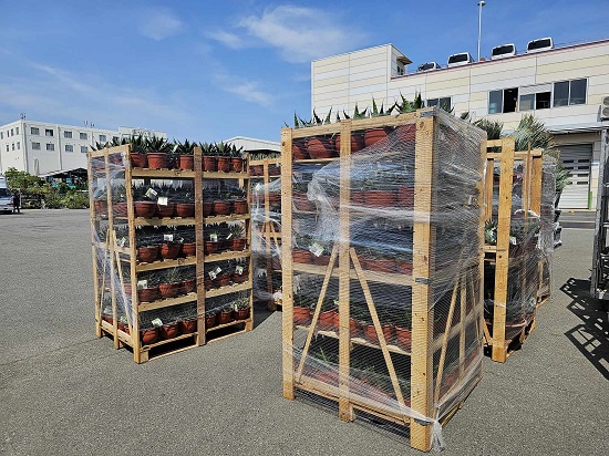 またユッカやアガベなどは大型トラック数台に分かれて、大阪営業所にお迎えすることができた。