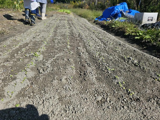 さすが自然農法による土。触るとホクホクしている感触が手のひらから伝わってくる。化成肥料によって固くなっている土とは一目?一触?瞭然である。思わず手袋を外してにぎりしめてしまう。柔らかい。その土がのった手のひらを顔に近づけると、自然の香りが漂ってくる。うまく文字で伝えられないのがもどかしくなるぐらいである。