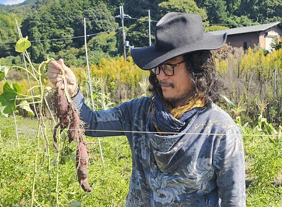 週中には大和 山野辺の道という素晴らしいロケーションにて、自然農法を実践しているパートナーの畑を訪問。そこで栽培されたサツマイモやトウガラシ、ナスなどの収穫のお手伝いをさせていただきながら、実地で学ばせていただくことができた。