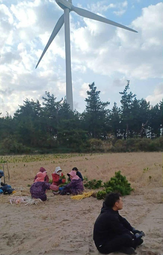 八竜松は、現在の秋田県三種町(旧八竜町周辺)の沿岸部の砂地で長年栽培されてきた迎春用根引き松である。葉が短く引き締まったしなやかな自然曲線の幹が美しく、多くの方に愛されている、とても人気のある松である。その松は3年前まで秋田美人松として限定された生花市場に出荷がされていた。しかし現場で指揮をとっていただいてきた方や、産地の方々の高齢化やその他の事情により、生産継続が近いうちに厳しくなるとうことから、バラエングループとして支援をさせていただくことになった。