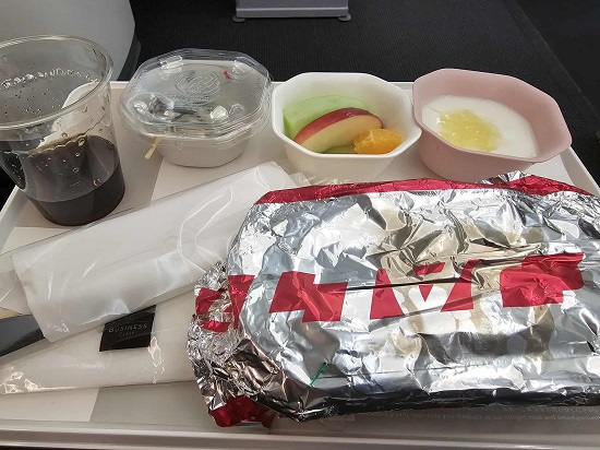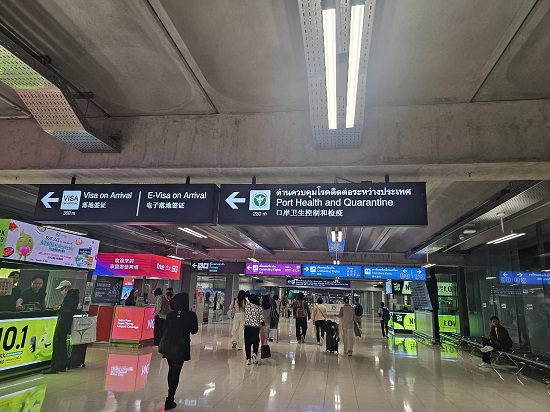 片道約6時間あり、私は機内では眠れないためにパソコン作業をしたかったが画面の明るさで周りに迷惑が掛かるかもなので、無理矢理目を閉じて時間が経つのを待つ。途中機内食も運ばれたが、体調的に食べることができずに過ごす。そんなフライトではあるが、無事に早朝5時にバンコク スワンナプーム空港へと到着した。