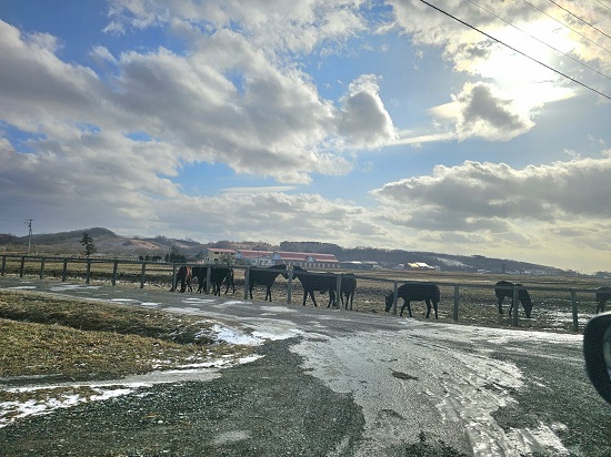 参拝後部屋に戻って準備し、朝ごはんをいただいてから今朝の訪問予定地である上野牧場さんへと向かった。上野牧場は他の牧場に先駆けて昨年終盤から「マリネックス」を実際に使用いただいているとてもありがたい理解者である。