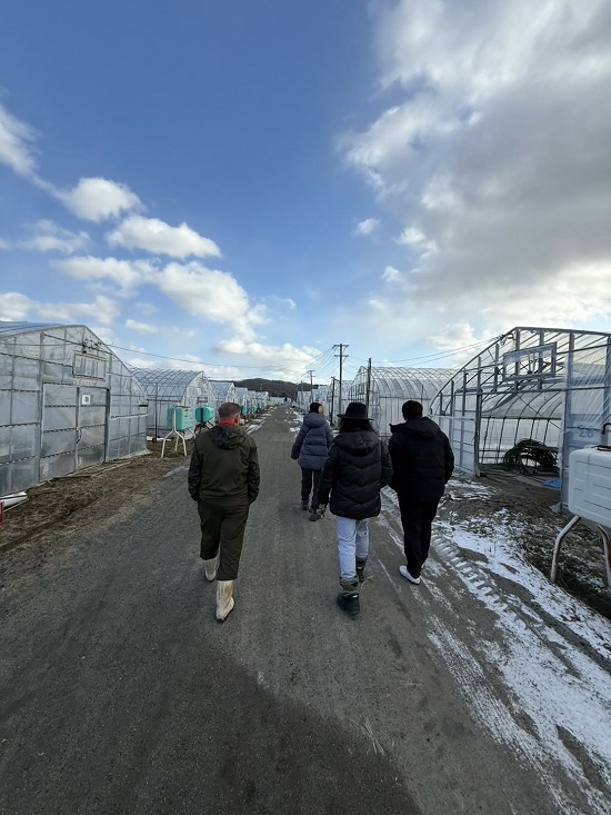 本所において担当部署の方々とのミーティングの後、実際の生産現場でもある実験センターへと移動し、指導員の方々にマリネックスはじめ弊社開発資材の説明をさせていただくことができた。指導員の方は、当然ながら資材などについて熟知されており、私たちの製品について事前に資料に目を通していただいたためか、その効用に理解と興味を持っていただけていた。さらに私たちの技術担当による課題解決の実績や経験をお伝えさせていただいたところ、強い興味を持っていただけ、今後に繋がる意見交換ができ、JAも早速試用を始めていただくことになりそうである。