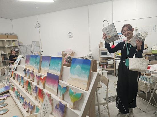 今回も就労継続支援事業(B型)で起ち上げたブランド「KINALI」その取り組みや製品を参加メンバーで拝見したが、とても魅力的なものが多い。中でも新聞紙で作ったバッグや、牛乳パックで作った小物はとても素晴らしかった。このアイデアには頭が下がる。