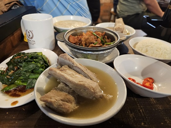 ここの人気メニューは写真中央の肉骨茶(バクテー)パンチが効いている透き通ったスープがとても美味しかった。ネット情報によると豚のスペアリブをニンニク、白胡椒、漢方食材とで長時間煮込んだ薬膳スープで疲労回復になどに効果が期待できるとのこと。今の又右衛門にはとてもありがたい料理であった。さらにローカルフードなので、体だけではなく、財布にも優しい食事となった。その後ホテルに戻る前に、近くのスーパーを立ち寄り、夜食をゲットしてそれぞれ部屋に戻ることにした。