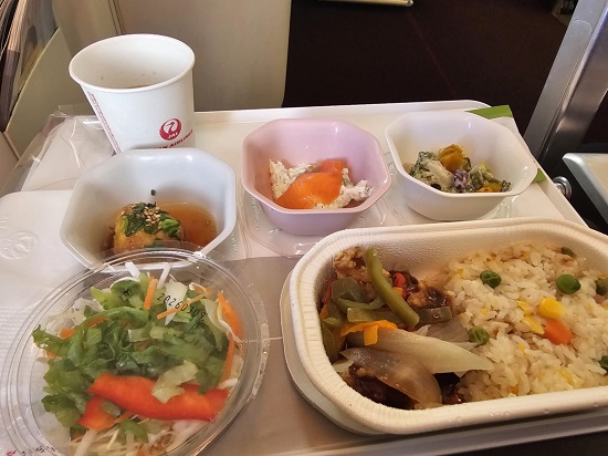 出発ゲート混雑もあってラウンジではゆっくりできずで、お腹が空いたまま搭乗口へと向かい、そのまま搭乗。しばらくして配っていただいた機内食を完食。そしてPC作業をしているうちに、あっという間に7時間30分が経ち、シンガポール チャンギ空港に到着した。