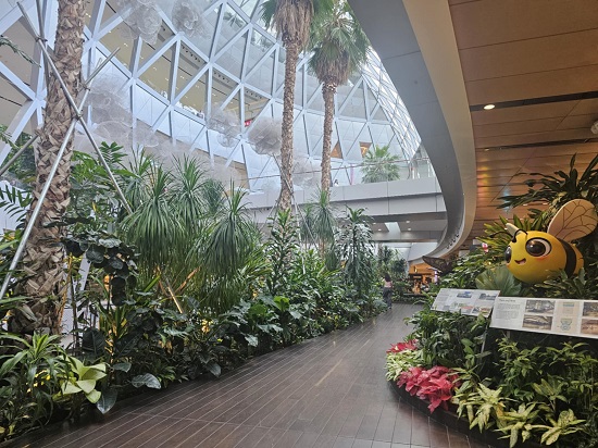 空港内の植物をチェックしながら、空港を出てホテルに直行。横目でガーデンズバイザベイを観ながら、約20分でホテルに到着することができた。