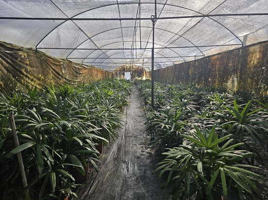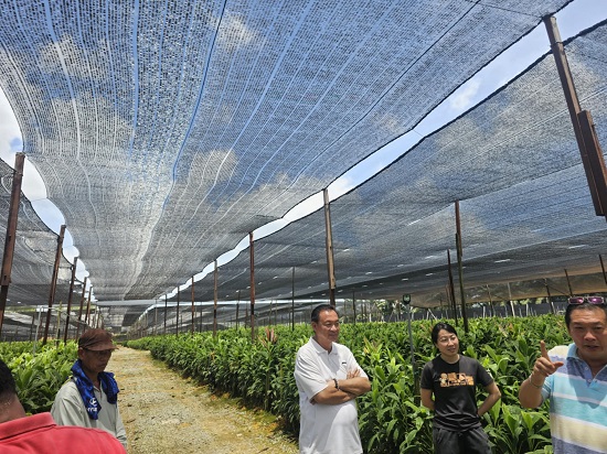 午後は再び広大な圃場に戻り、数多い植物を拝見させていただくことにした。ここの農場はアジアを代表する観音竹生産の継承もしており、とても多くの観音竹が栽培されていた。