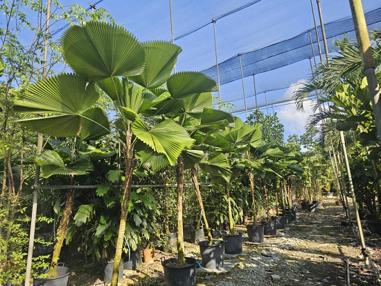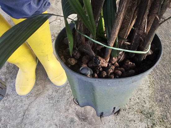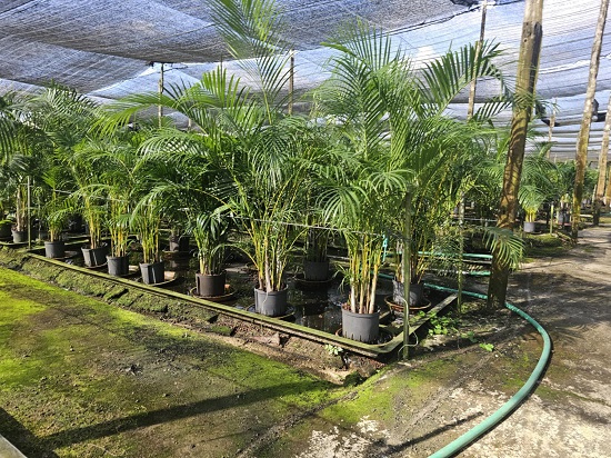 ヤシ類もココピートで生産されているため、あらためての洗浄の必要性もない。さらに線虫対策としてプラスチックシートやブロックなどで、土壌からPOTを隔離されているものも多く、申し分ない状況であった。