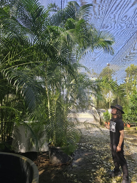 高さ5m以上のアレカヤシやユニークな形のコンシンネなどもチェックさせていただき、午前中いっぱい農場を走り回らせていただいた。