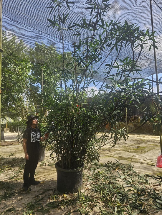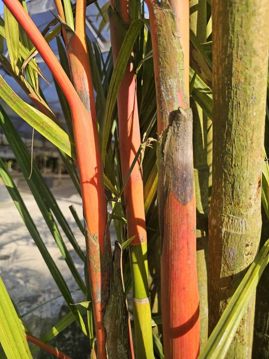 まず気になり確保させていただいたのが、観音竹とも言え棕櫚竹とも言えるが、少し雰囲気が違う。農場の方に聞いたところ、葉が小さく細くて従来品種からの変種であろうとのこと。さらに現在ここにあるだけで全て終わりということなので、迷わず数本に赤いタグをつけさせていただいた。きっと近くあるプロジェクトで活躍をしてくれるであろう。