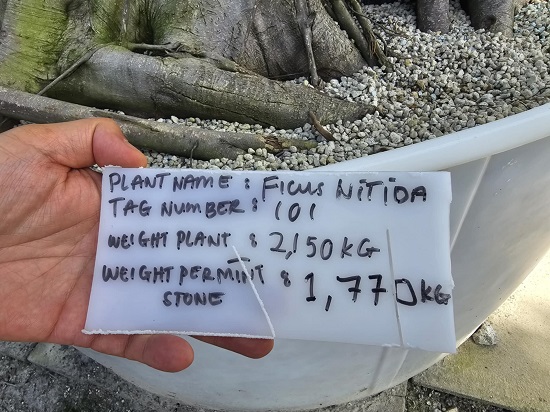 この木は、オランダの特別な施設に使われる予定であるが、土はもちろんココピートなども使わず、きれいに洗われた軽石だけで管理されている。このような大樹を軽石のようなもので、管理するのに問題はないか?と尋ねると、試行錯誤し現在まで来ており、土やココピートより好結果を残しているとのことである。