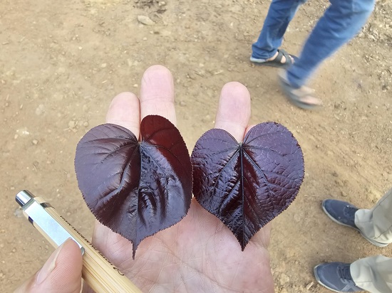 場所を移動して、見つけられたフィカス。これはアムステルダムではなく、ショウナンゴムでもない種。探していた品種である。とても興味深いので早速マーキングをさせていただいた。