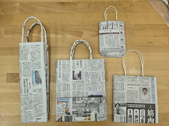 牛乳パック以外に、沖縄の古新聞を使ってのバッグもある。とてもしっかりしていて良い感じである。マチのある形状で使いやすく利用者にも評判が良いとのことである。縦長のものはワインボトル用。耐久性もあり高評価とのことである。最近ではこの施設での取り組みを支援する考えと、その製品自体の評価が相まって、シールを貼ってショップのオリジナルバッグに採用されることも増えてきたとのこと。そこで又右衛門もお花屋さんや園芸店さんでも採用できるのではないかと考え、KINALI×BARAENでも展開を考えることになった。多くの数量をすぐにとはいかないが、このような素敵な取り組みでもあるし、中東情勢で入手困難な素材もあるため古紙利用はとても大切であると考える。全てを置き換えることはできないが、ほんの一部でもこのような取り組みをすることがとても重要と考えてるので、時間がかかるかもしれないが前向きに取り組んでいきたいと思うこととなった。