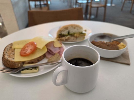 今回は入国審査も混んでなく、税関も比較的スムーズにいけたがやはり1時間はかかった。ただ今回はそれを見越して2時間以上余裕をみていたのでゆっくり慌てずに移動。時間に余裕があったので無料ラウンジでLONGBLACK(コーヒー)と軽食で目を覚ますことにした。