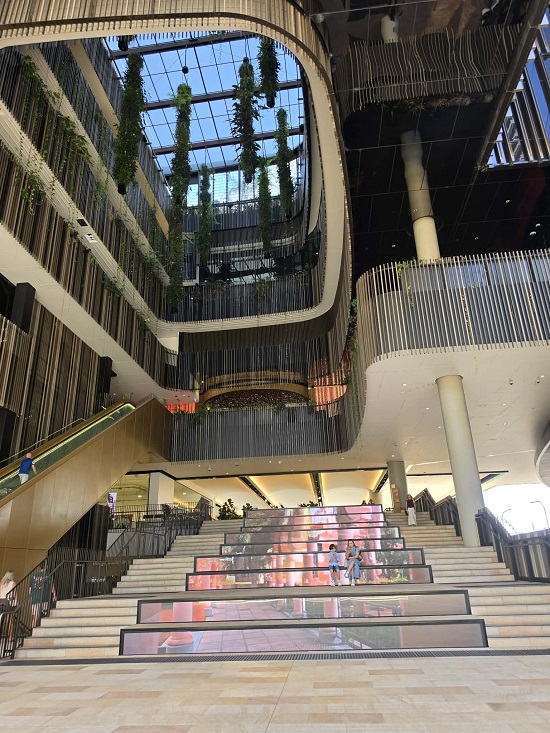 これも中々近代的で素敵な建物の階段がスクリーンになっており素敵である。
