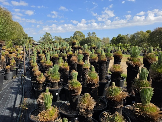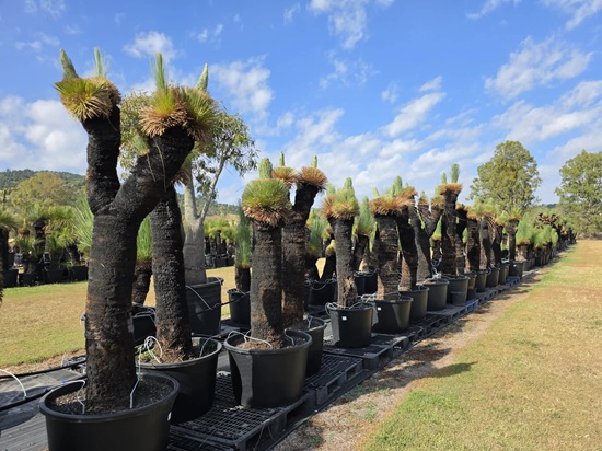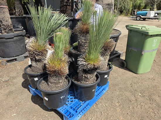 私は約10年前に、このような大きなグラスツリーを日本にお迎えさせていただいたが、今では大阪と沖縄にて数本管理しているぐらいで、その他は植物園などにお届けさせていただいた。その後多くの方にリクエストをいただきながら輸入を控えていたのは、グラスツリーが根洗いに強くないからである。