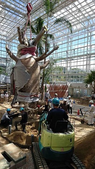 さらに、ここでクレーン部隊はスリングを巧みにあやつり慎重にバオバブを垂直にたてることに成功を見事にさせた。